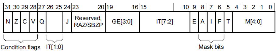 산술 연산의 add, adc, sub, sbc, rsb, rsc / 논리 연산의 and, orr, eor, bic 명령어의 뒤에 s를 붙이면 CPSR의 플래그 값을 설정할 수 있다